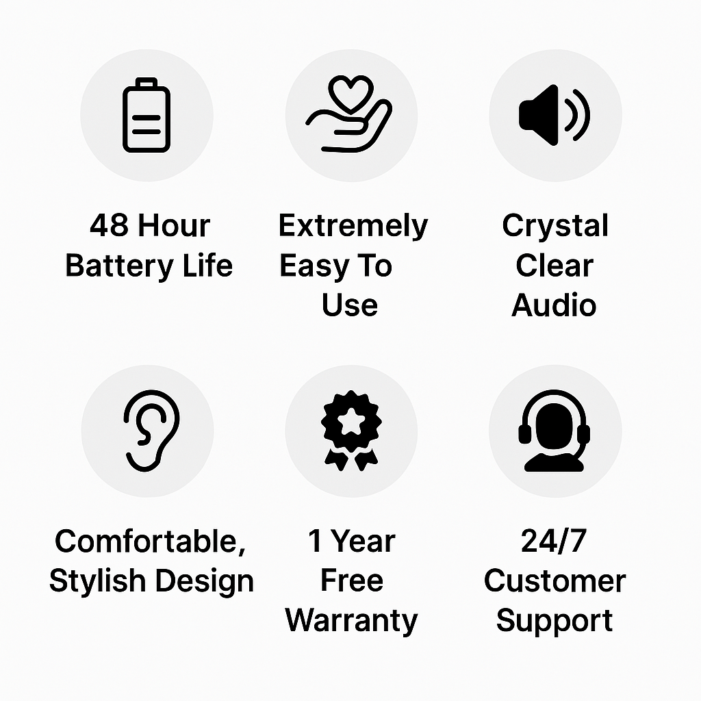 I’ve been using these hearing devices for a few weeks now and I’m honestly blown away. The sound is so crisp, and they’re super easy to wear all day.”